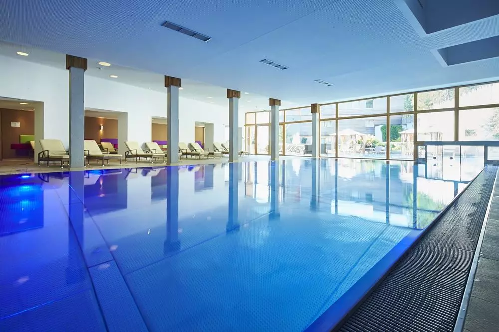 Der großzügige Spa- und Wellnessbereich bietet Erholung pur: Panoramapool, Saunalandschaft und wohltuende Behandlungen mit Blick auf die Alpen sorgen für absolute Tiefenentspannung.